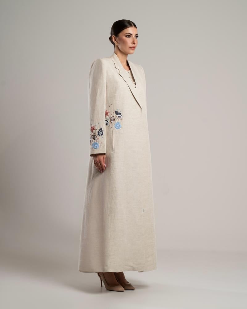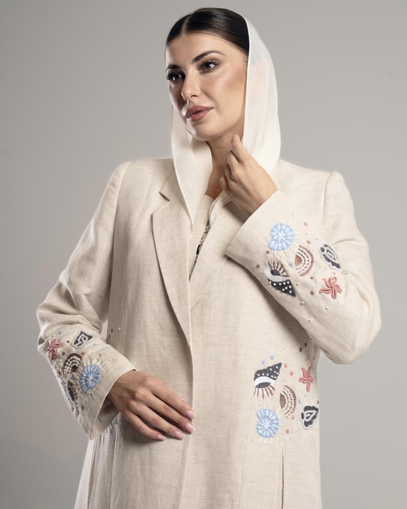 • اللون: بيج مزخرف بتطريز أصداف ونجم البحر