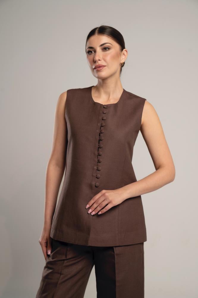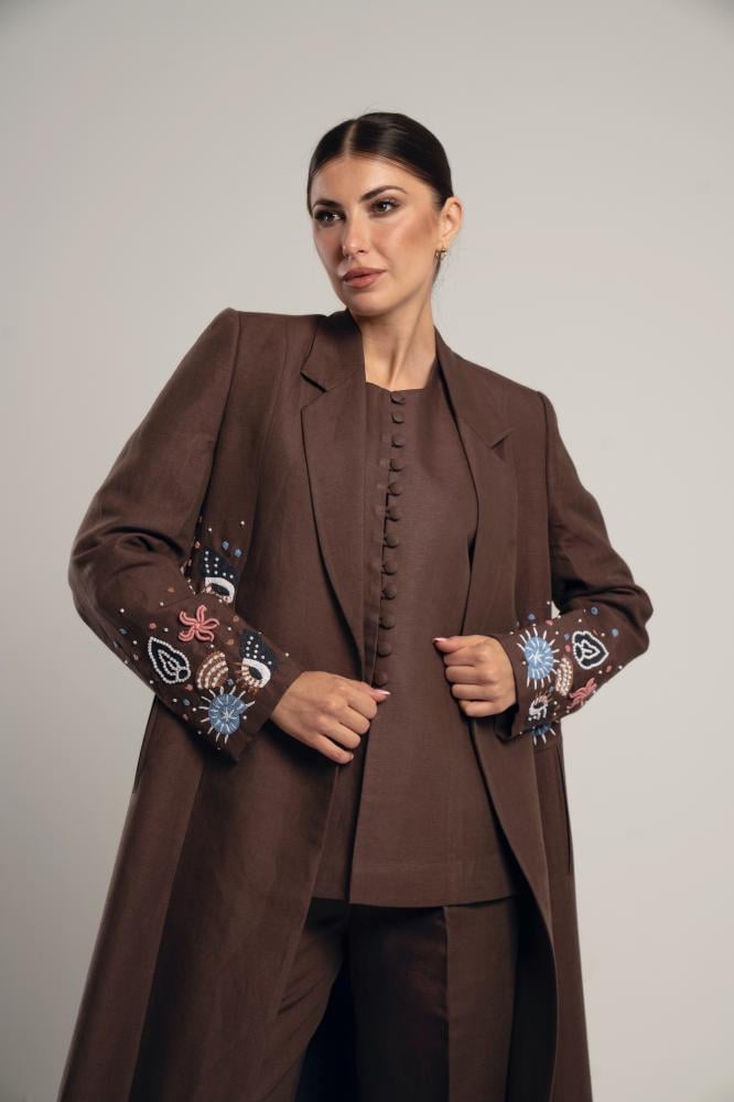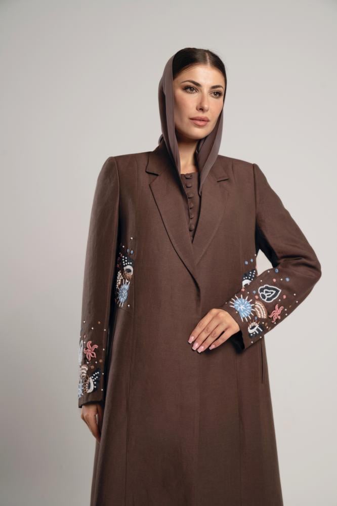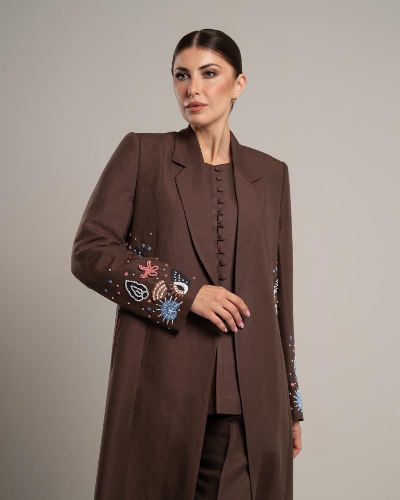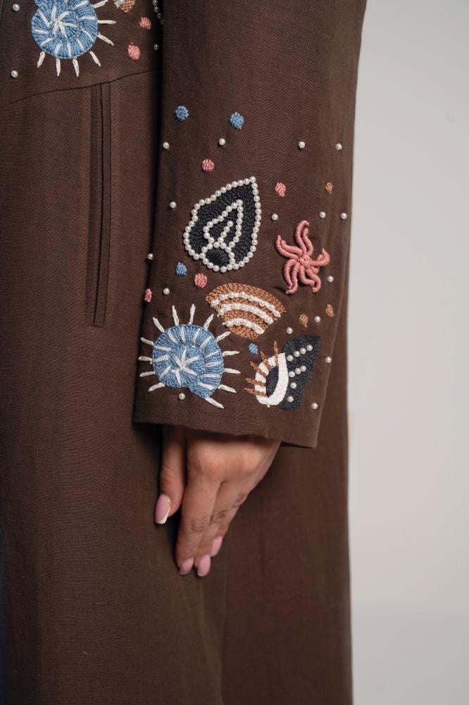 • اللون: بني مزخرف بتطريز أصداف ونجم البحر
