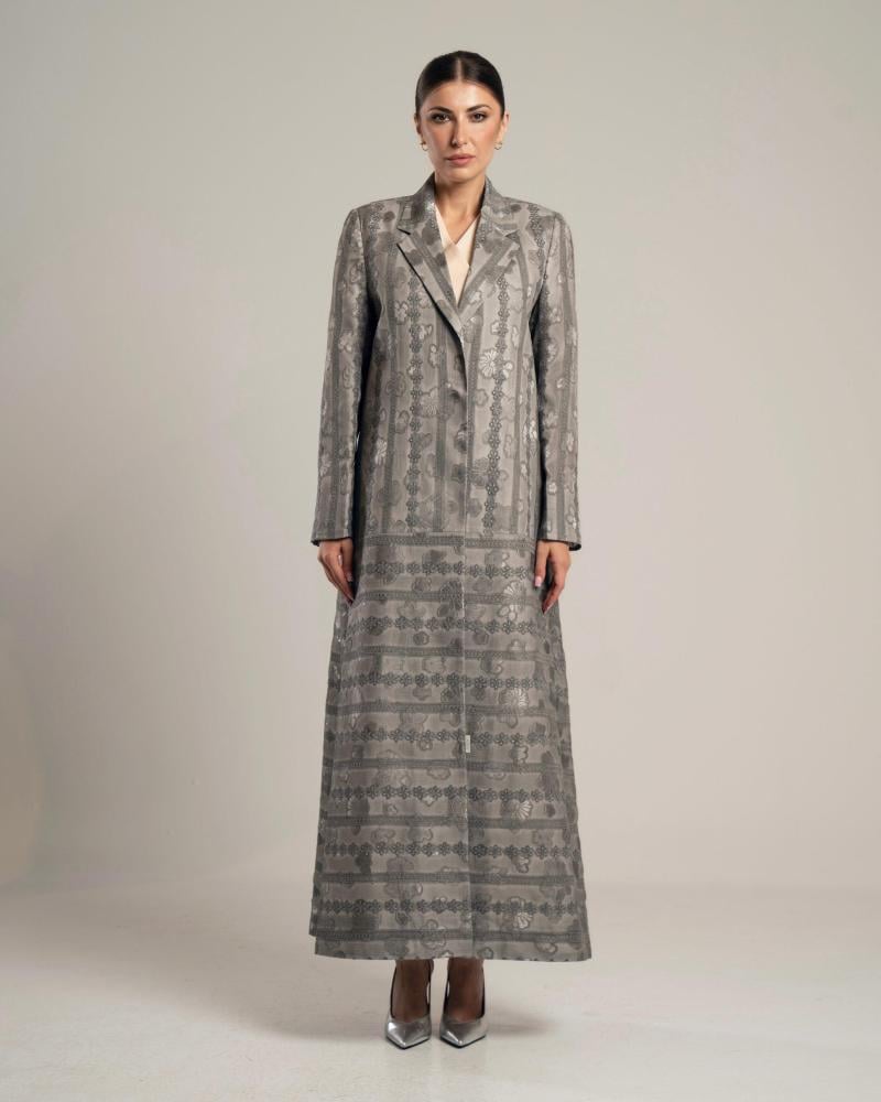 • اللون: بيج وأوف وايت مزخرف بتطريز دقيق وطبعات ورد فاخرة