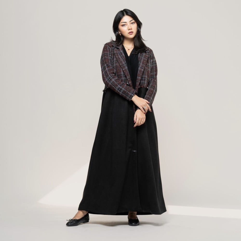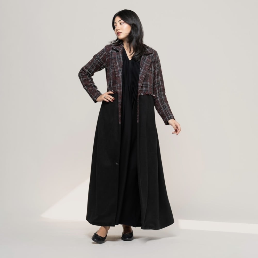 Fabric: شمواه اسود مع تويد كاروهات لون أحمر .